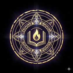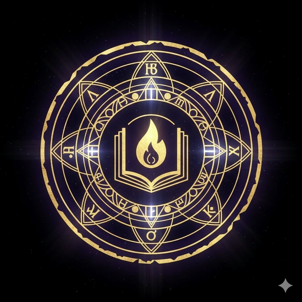An open book with a large flame rising from the pages, representing the "Gnosis" or "Light of Knowledge."